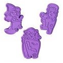 Set includes 3 cutters + 3 embossers made from food-safe ABS plastic. Dimensions: Witch (93 x 113mm), Vampire (66 x 107mm), Zombie (64 x 114mm)